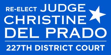 "Hello, my name is Judge Christine Del Prado, and I have had the honor of serving as Judge of the 227th Criminal District Court since 2022. Every day, I bring experience, integrity, and a strong work ethic to the courtroom. I am committed to ensuring the 227th remains a place where justice is administered firmly—but always fairly.